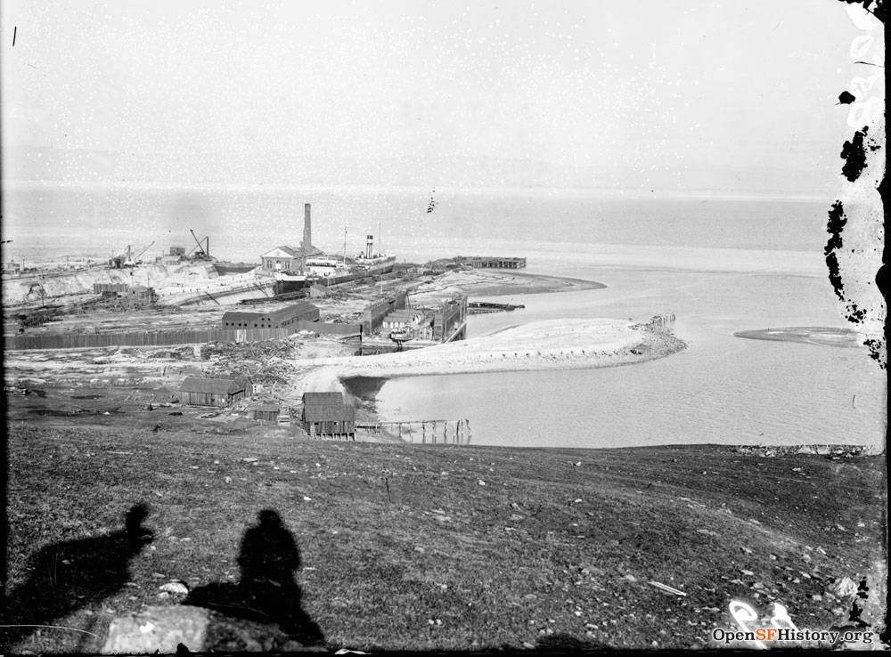 The California Dry Dock Company opens Hunters Point Dry Docks on about 30 acres of coastline in the Bayview. A large quantity of serpentine rock in the area makes it ideal to stabilize large structures. Before this, the area was a productive fishery used by the Ramaytush Ohlone, among others. Chinese-owned shrimp fisheries remained nearby until the late 1930s.