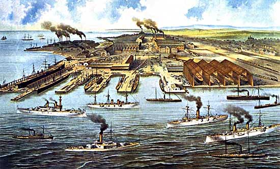 The Union Iron Works Company acquires the site and builds 1,000-foot-long dry docks, large enough to build or repair the biggest commercial and military ships of the era.