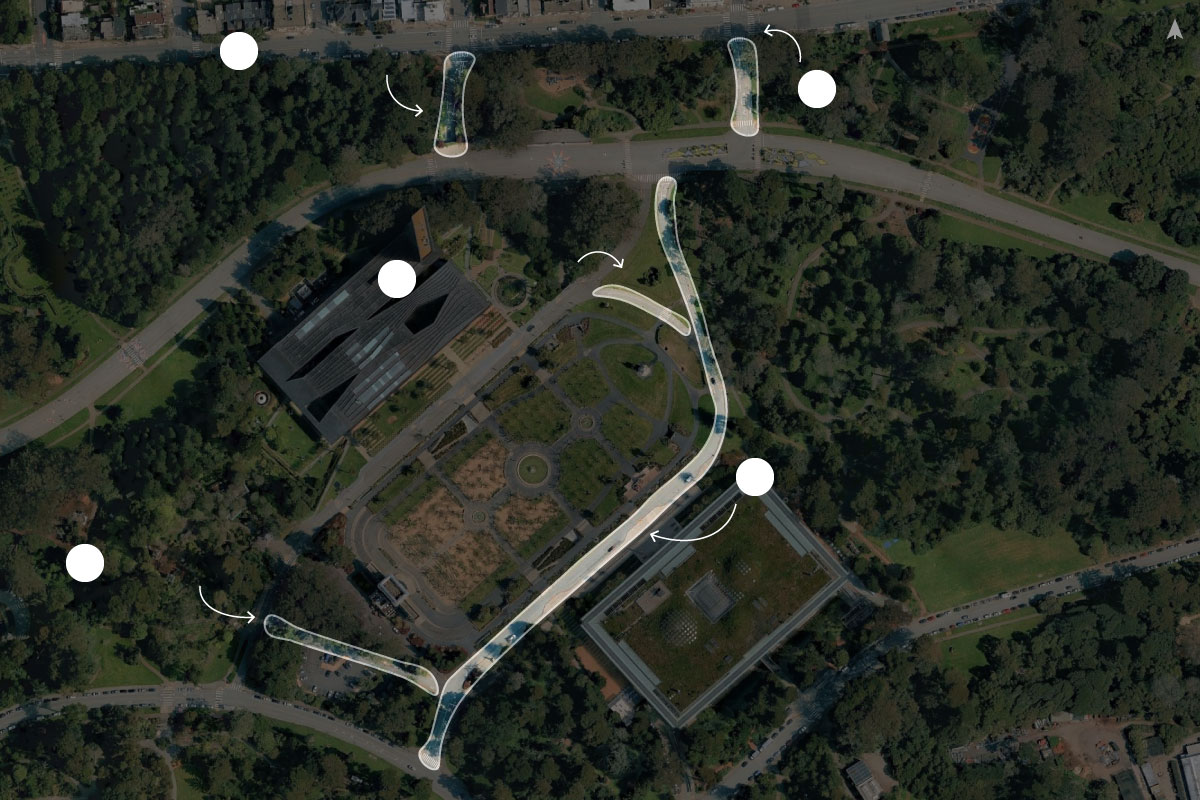 I vote for option B, Bowl Drive, & turning it into something like a geoglyph of Claude. It could be paved white & have white stones arranged around it for his body shape & limbs. There is the viewing tower at the De Young Museum that might give a good view of it. Also, the roof garden at the Academy of Sciences could be a good viewing point.