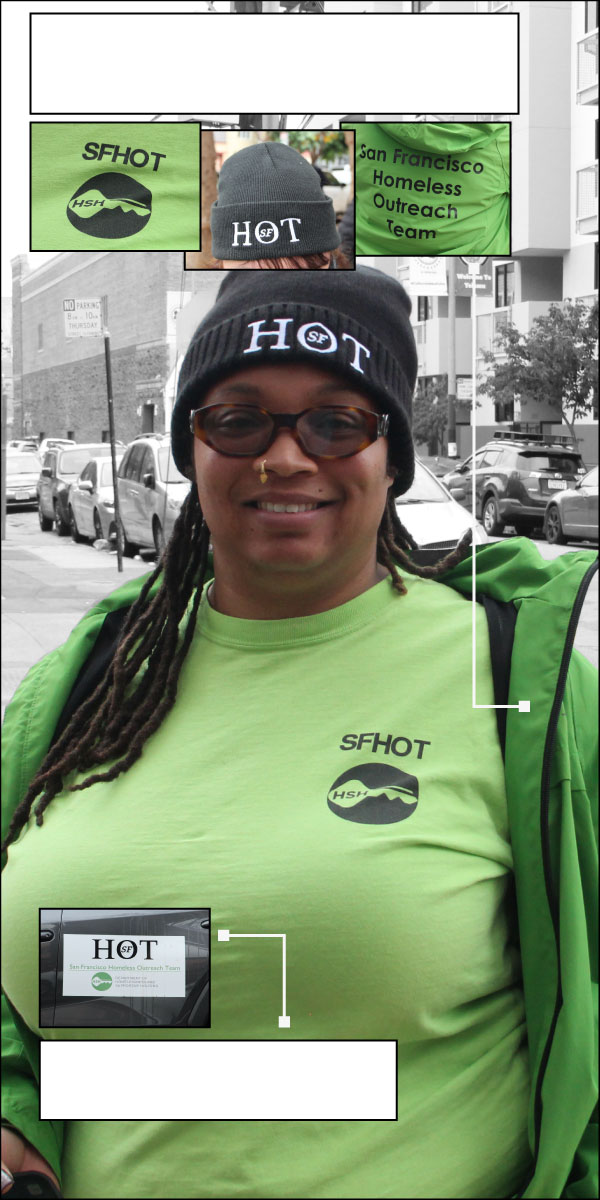 They represent three city departments and two contracted groups: The Department of Public Health, Department of Homelessness and Supportive Housing, the Department of Emergency Management, and city contractors Urban Alchemy and Ahsing Solutions.