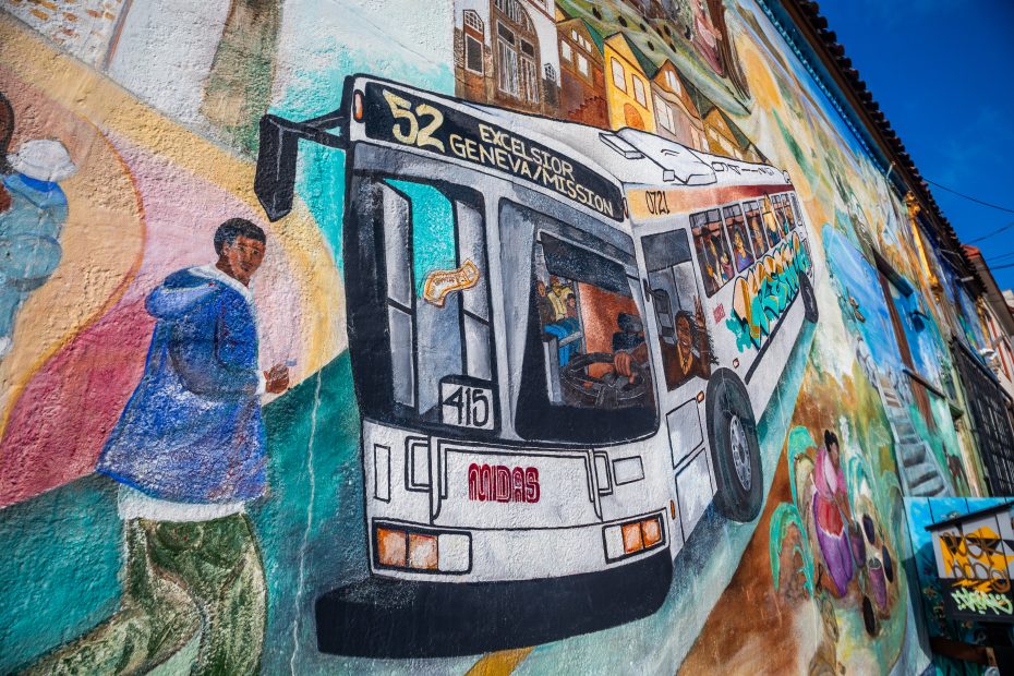 Mural of the 52 Line bus in Excelsior District on April 24, 2026. Photo by Zoe Malen