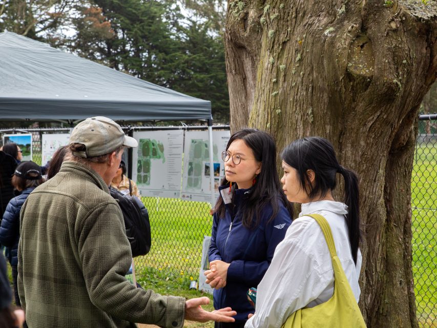 District 11 Supervisor Chyanne Chen (middle), accompanied by her staffer Fiona Kong (right), listened to residents’ feedback on the city’s proposal of the Crocker Amazon park renovation on April 26, 2026. Photo by Xueer Lu.