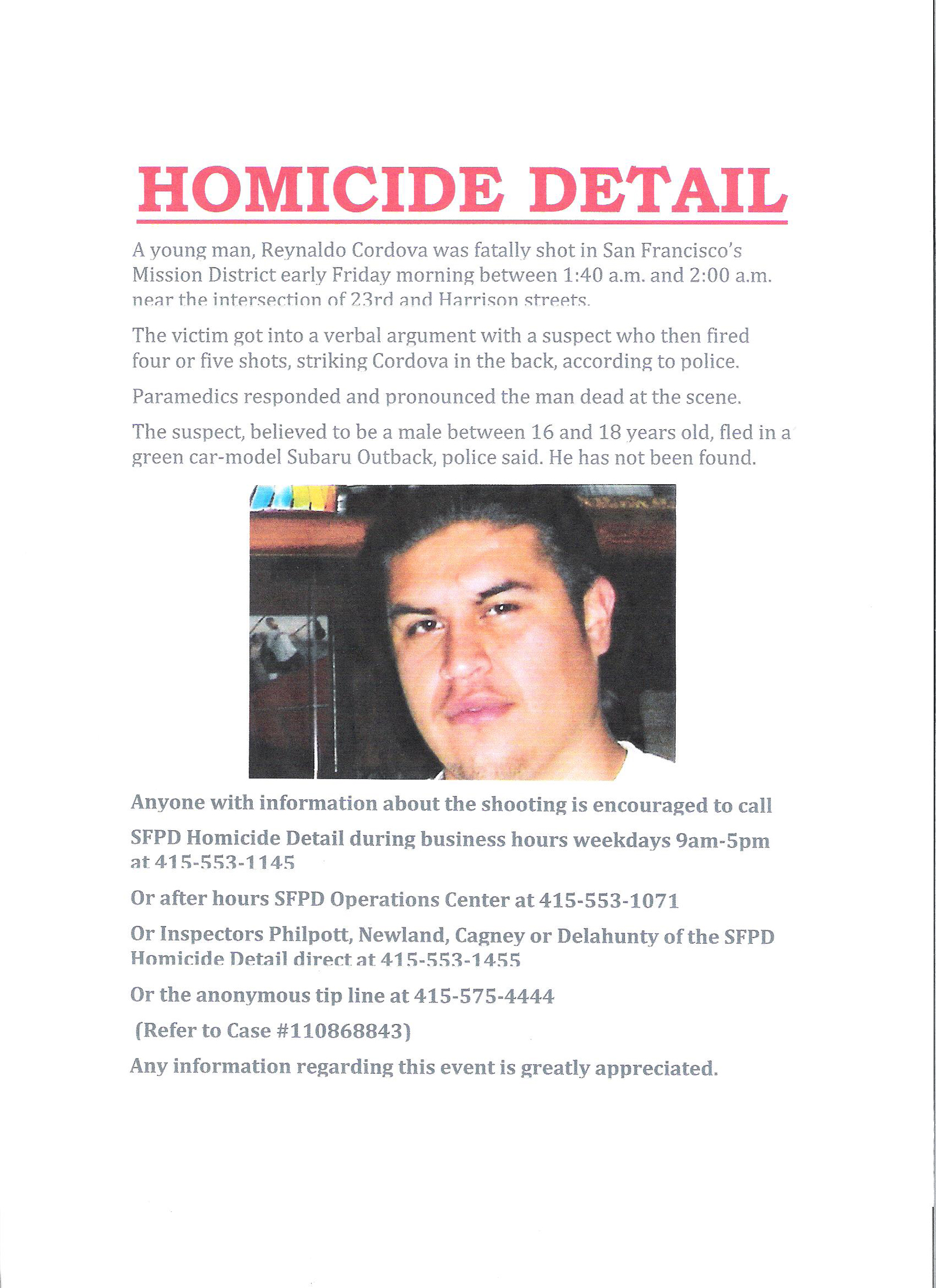 Posted inToday's Mission, Trouble Family of Shooting Victim Asks for Information by Mission Local Staff November 27, 2011, 5:07 pmSeptember 29, 2020, 1:11 am
