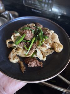 Xian Biang Biang Hand Pulled Noodles with Cumin Lamb and Garlic Chives