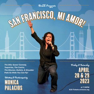 Renowned Chicana lesbian writer/performer Monica Palacios presents her solo show: San Francisco, Mi Amor!, about the start of her queer comedy career and activism in San Francisco during the 1980s. A challenging decade to be an out Chicana lesbian comic as AIDS is front page news, causing mass hysteria and shining a negative light on the LGBTQ community. Monica takes this bleak time in history and shares her triumphant story about being one of the first Chicana lesbian comics performing at the Valencia Rose Cabaret, the first gay comedy club in the nation. She’s also a Film Student at San Francisco State University trying to figure out how to take social justice courses from Angela Davis. Monica is happily living with her lesbian sister, Eleanor—double dyke familia! Palacios is enchanted by and lusts after the women making her burritos at Taqueria La Cumbre. Her day job is waitressing at a funky Mexican restaurant at the tourist trap Pier 39 and she reminisces about birthing the comedy troupe Culture Clash. Monica meets and auditions for actor Edward James Olmos on 24th Street during a Dia de Los Muertos festival and also shares stories of grooming her lesbian mullet and mucho mucho mas! Throughout the play, projected images will be shown from this time period: funky first hand-made flyers, headshots, business cards, newspaper clippings and other memorabilia.