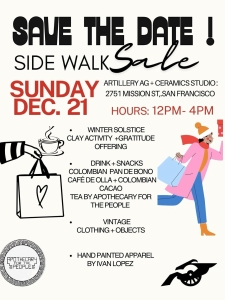 Artillery AG 2751 Mission St, San Francisco, CA, United States🗓 SAVE THE DATE 🗓 This Sunday we’re bringing the magic to the sidewalk ✨ Join us for a Winter Solstice Sidewalk Sale filled with art, warmth, and gratitude 🤍 🌀 Clay activity + gratitude offering ☕ Colombian pan de bono, café de olla & cacao 🍵 Tea by @apothecaryforthepeople 👗 Vintage clothing & objects […]