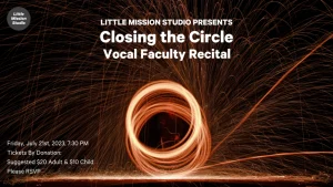 Little Mission Studio: Closing the Circle: Vocal Faculty Recital Jul 21 Little Mission Studio: Closing the Circle: Vocal Faculty Recital Featured 7:30 pm - 9:00 pm