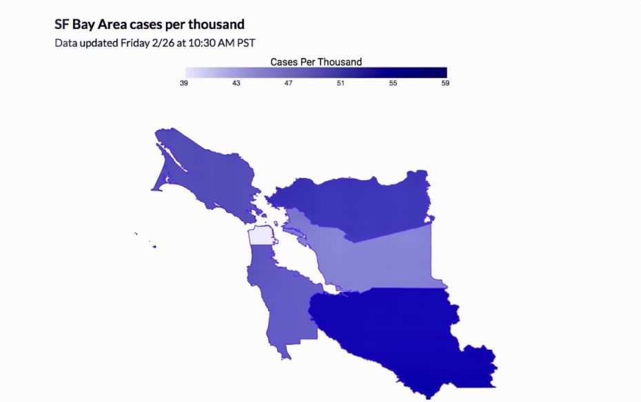 The vaccination pace has picked up. As of February 25, 20 percent (149,646) of San Francisco residents over 16 have received one dose, while 8 percent (57,551) have received two.