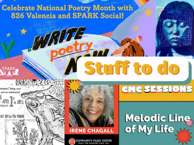 It’s finally sunny, and poetry is everywhere–along with art, talks, and a party at a controversial neighborhood spot.