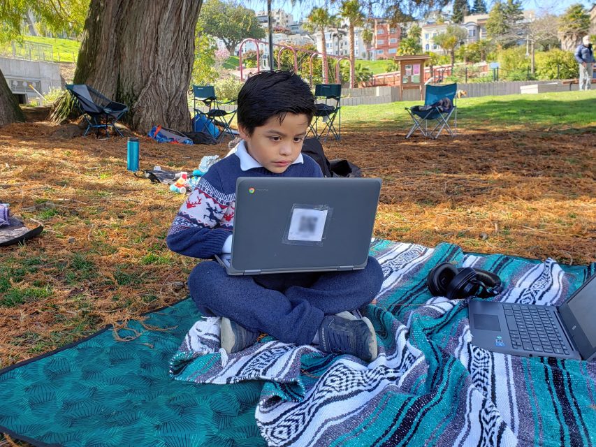 Some parents have taken action on their own and are holding outdoor classes three days a week at Dolores Park. For some, the wifi is better in the park than at home.