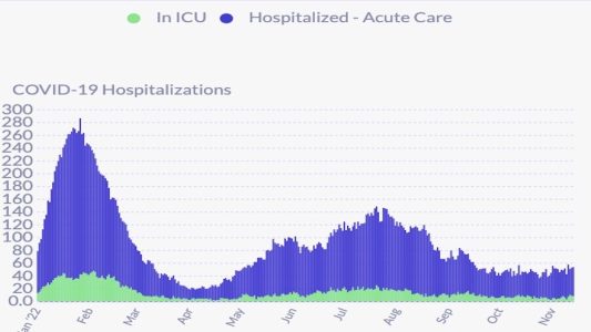 Hospitalizations, recorded infections, positivity rates and R Number models continue to rise. Wastewater covid is down from 2 weeks ago but trending upwards.