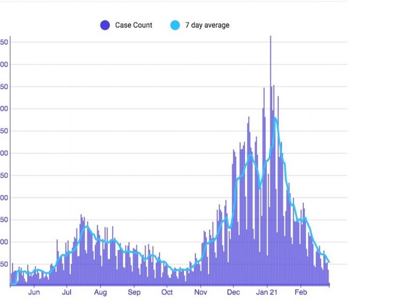 Posted inCoronavirus español, Health, Newsletter Covid Tracker: 33,970 cases, 412 deaths by Mark Rabine February 27, 2021, 11:34 amJune 22, 2025, 1:02 pm