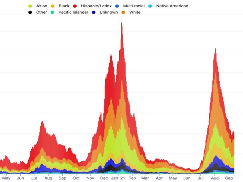 Posted inCoronavirus español, Health, Newsletter Covid-19 Tracker: Delta takes a dip by Mark Rabine September 8, 2021, 12:27 pmJune 22, 2025, 12:36 pm