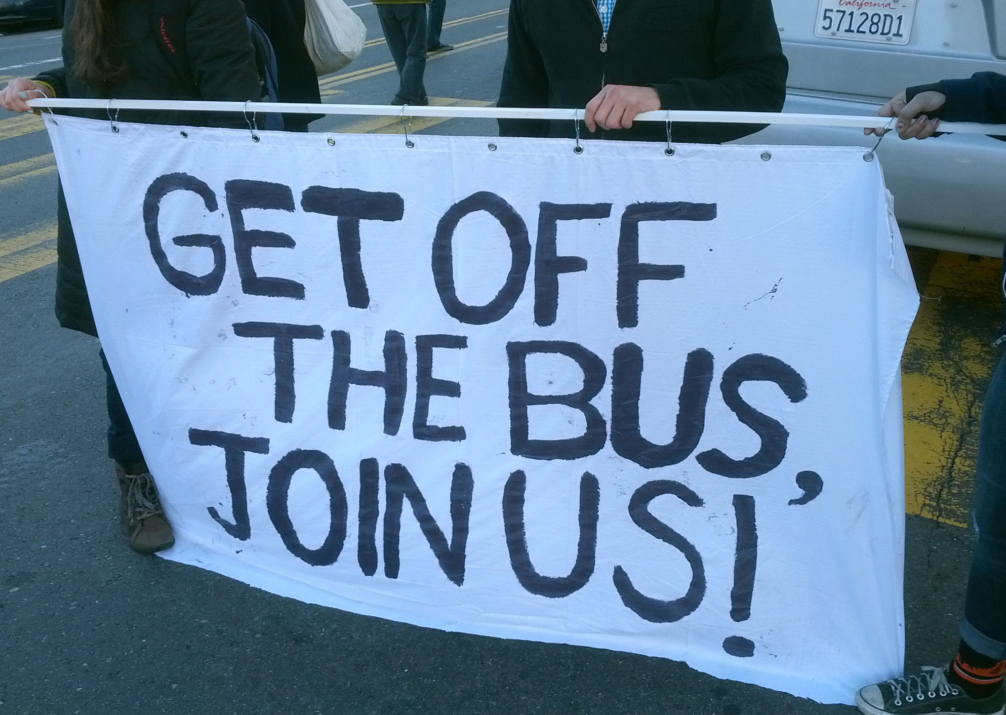 Posted inNewsletter, Today's Mission, Transportation Protesters Return to Bus Stops as Supes Work Out Tech Shuttle Deal by Laura Waxmann February 9, 2016, 1:51 pmJune 21, 2025, 10:50 pm