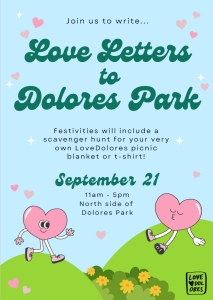We’re excited to invite you to our upcoming event, "Love Letters to Dolores Park" taking place on Saturday, September 21, 2024, from 11 am to 5 pm at Dolores Park. What’s the Event About? We’re inviting park-goers to write “love letters” to Dolores Park, expressing what makes this iconic San Francisco spot so special. These […]
