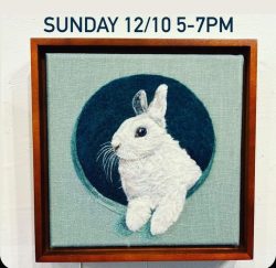 We will be having a closing reception on Sunday 12/10 from 5-7pm for our #rabbitrabbitartshow - pop in meet some artists and take some art home !