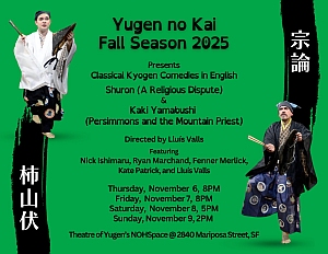 Theatre of Yugen at NOHspace 2840 Mariposa Street, San Francisco, CA, United StatesWe welcome you back to our seasonal performances of classical Japanese Kyogen plays in English at NOHSpace! For this Fall season, we are excited to present Shuron (A Religious Dispute) and Kaki Yamabushi (Persimmons and the Mountain Priest), performed by our wonderful ensemble members! https://www.theatreofyugen.org/yugen-fall-2025 Directed by Lluís Valls Featuring Nick Ishimaru, Ryan Marchand, Fenner […]